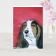 Ein niedliches Basset Hound-Portrait in rotem Hintergrund