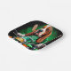 Ein wütender Freund hinter den Lenkern eines glänzenden grünen Fahrrads, das ein grünes Saint Patrick's Day Outfit trägt, das den Kopf dreht. Der Hund ist in einem festlichen Ensemble gekleidet, das mit einer grünen Bogen-Krawatte und einem passenden Oberhut versehen ist, der sich schmutzig über dem Kopf befindet. Das Outfit zeichnet sich durch die aufwändigen Entwürfe von Kleeblättern und Kobolden aus und macht deutlich, dass dieser Hund bereit ist, den St. Patrick's Day im Stil zu feiern.