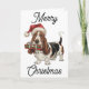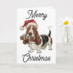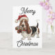 Basset Hound in Weihnachtsmannmütze im Mund Karte