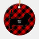 Trendrotes und schwarzes kariertes Basset Hound-Ornament mit dem Namen Ihres Hundes und dem Jahr. Man könnte es auch als Gedenkschmuck verwenden, aber das Jahr in die Geburt/den Tod ändern. Andere Rassen und Muster sind in unserem Shop erhältlich (siehe Link zur Sammlung für andere Rassen/Farben) und lass mir zu wissen, ob Sie Ihre Rasse nicht finden können: info@lemontreecards.com