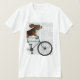 Basset Hound on Bicycle von Fabfunky. Ein Basset-Hund, der auf einem Fahrrad reitet, mit einer Buchseite für einen Hintergrund. | 192050D