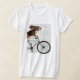 Basset Hound on Bicycle von Fabfunky. Ein Basset-Hund, der auf einem Fahrrad reitet, mit einer Buchseite für einen Hintergrund. | 192050D