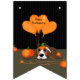 Dieses Design umfasst einen Basset Hound Hund, der ein Kürbishut-Kostüm trägt, sowie ein paar Truthähne, umgeben von Kürbissen und Ballons. Der Ballontext kann in Happy Halloween oder alles, was Sie wählen, geändert werden.