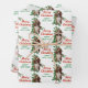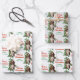 Das wiederholte Muster auf diesen Weihnachtsblättern ist ein Bild eines bezaubernden Basset Hound Hundes, der zwischen grüner Heilige mit roten Beeren sitzt. Der rote und grüne Text sagt "Frohe Weihnachten" und "Frohes Neues Jahr". Der Hintergrund auf zwei der Blätter in diesem Set ist weiß, während das dritte Blatt silber ist.