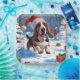 Eine herzliche Ferienillustrierung mit einem fröhlichen Hund, der im Schnee spielt, eine Weihnachtsmannmütze trägt und von bunten Geschenkboxen umgeben ist. Im Hintergrund bauen die Kinder neben einem schneebedeckten Weihnachtsbaum einen Schneemann und schaffen so ein fröhliches Winterwunderland. Ideal, um Feiertagssjubeln zu verbreiten und den Zauber von Weihnachten zu erfassen.