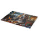 A heartwarming holiday scene featuring a dog sitting peacefully beside a window, surrounded by glowing Christmas lights. This cozy and festive design captures the spirit of the season, perfect for adding warmth and charm to any space. Ideal for dog lovers and holiday decor enthusiasts.