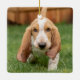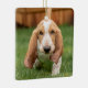 Basset Hound, drei Monate alt, geht in seinem Hof mit einem Gras in seinem Mund in Renton, Washington Staat, USA| Janet Horton / DanitaDelimont.com| US48 JHO1542