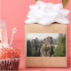 Rechteckiger Aufkleber der Bastei-Brücke über der Elbe, der die ikonischen Gesteinsformationen der Elbe Sandsteingebirge bei Dresden im Nationalpark Sächsische Schweiz (Sächsische Schweiz) in Ostdeutschland verbindet.