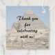 Set von 12 viereckigen Gunst-Tags mit einem Bild mit einer Messingstatue des antiken ägyptischen Göttin Bastet und einer Beschreibung von ihr auf einem abgewaschenen Bild einer ägyptischen Pyramide und der Sphinx. Die Rückseite hat das abgewaschene Bild der ägyptischen Pyramide und der Sphinx und anpassbarer Text. Bastet, heute als "Katze-Göttin" bekannt, ist die Göttin sinnlichen Vergnügens, Beschützer des Haushalts, bringt Gesundheit und den Schutzheiligen der Feuerwehrmänner. Sehen Sie sich die gesamte Goddess Favor & Gift Tag-Sammlung in den SPEZIELLEN TOUCHS an. | Abschnitt Gastgeschenke.