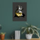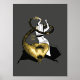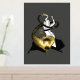 A fun fusion of ancient Egyptian mythology and artistic expression. Well known Cat Goddess Bastet is depicted as a bellydancer playing her ancient instrument sistrum. As the music notes gradually diminish in size, they transform into the scales of the nefarious serpent, Apep (also known as Apophis).