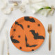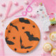 Orangefarbener Hintergrund mit schwarzen Fledermäusen
