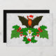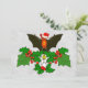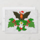 Das Bat mit Weihnachtsmannmütze hängt in den Spänen der Heiligen mit roten Beeren. Eine tolle Art, ein sehr schweres Weihnachten zu feiern.