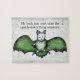 Bat With A Bad Back beinhaltet einen medizinisch angeschlagenen Fledermaus mit einem schlechten Rücken, der sich nicht mehr an das "Auf-und-Ab-Ding" halten kann. Weiß, grün und blau.