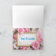 Bat Mitzvah-Karte mit einer wunderschönen Anzeige von Lichtern, Kerzen und Essen; innen gibt es rosa und weiße Blume, die einen goldenen Rahmen mit dem Wunsch "Mazel Tov!" umgeben. Personalisieren Sie mit ihrem Namen und dem Datum der Veranstaltung.