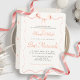 This elegant and rustic bat mitzvah invitation features a light pink bow/ribbon frame. The reverse side features a light gray background with light pink bow pattern. Personalize it for your needs. You can find matching products at my store.
