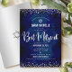 Bat Mitzvah Modern Navy Silver Glitzer Foil Skript Einladung