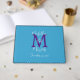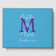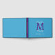 Dieses elegante minimalistische Bat Mitzvah Party Gästebuch hat einen himmelblauen Hintergrund, lila Monogramm und weißen Schriftzeichen. Einfach zu personalisieren, einfach Beispielname und Text auf Vorder- und Rückseite ändern oder löschen. Alle Rechte vorbehalten © 2024 Alan & Marcia Socolik.