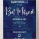 Seien Sie stolz, freuen Sie sich und präsentieren Sie diesen Meilenstein Ihres Lieblings-Bat Mitzvah! Versenden Sie diese atemberaubende, moderne, maßgeschneiderte All-in-One-Einladung für eine Veranstaltung, an die Sie sich erinnern können. Funkelnd silberne Imitate, Glitzer-Punkte und Typografie-Skripte überlagern einen reichen, dramatischen, marineblauen Aquarellhintergrund. Dieses All-in-One-Produkt verbindet eine individuelle Einladung mit einem Abend-Veranstaltungsort mit einer leicht zu zerreißenden, perforierten UAWG-Postkarte. Personalisieren Sie den benutzerdefinierten Text mit dem Namen, Datum und Veranstaltungsort Ihres Bat Mitzvah. Garantiert, um ihrem besondere Anlass stilvollen Spaß zu verleihen! Geben Sie einfach den Namen, das Datum, den Tempelort, die Details zum Veranstaltungsort und andere Informationen Ihrer Abend ein, und Sie können dieses Bat Mitzvah All-in-One-Angebot ganz einfach personalisieren. Bitte schicken Sie mir eine Nachricht mit Fragen oder Wünschen.