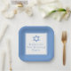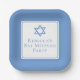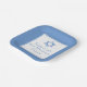 Diese hellblaue Bat Mitzvah Party quadratische Papierplatte hat einen schönen, künstlerischen Star von David zeichnend oben. Die Dekoration ist personalisiert und die weiße Dekoration ist sehr schön.