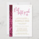 Helle, rosa und goldene Glitzer mit modernem und elegantem Bat Mitzvah lädt zu einer modernen, unterhaltsamen und eleganten Mitzvah-Zeremonie und zum Mittagessen ein. Glitzer Hintergrund ist ein flaches, gedrucktes Bild, KEIN echter Glitzer, sodass es kein Durcheinander machen, aber trotzdem funkelnd und blingig aussieht! Das Designer-Geschäft Paper Grape Zazzle zeichnet sich durch die Koordination von Schreibwaren und Dekoration aus, um Ihr elegantes und mädchenhaftes Bat Mitzvah-Thema zu vervollständigen.