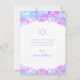 Zeigen Sie Ihre Wertschätzung für Ihre Familie und Freunde für die Teilnahme an Ihrem Bat Mitzvah mit dieser eleganten Dankeschön Flachkarte. Dieses Design ist mit einer Grenze von delikaten Hydrangea-Blüten in Rosa-, Aqua-Blau- und Lavendeltönen gestaltet. Es gibt einen Stern von David, der die Karte und die Worte "Danke" in einer modernen rosa Schrift Typografie betonen. Entworfen von Künstler ©Susan Coffey.