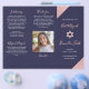 Tri-fold Bat Mitzvah program in navy blue and rose gold. Easily edit with your ceremony information