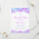 Rosa-, Lavendel- und Aquablau-Hydrangea-Blume und ein Star of David schmücken diese elegante Aquarellkarte Bat Mitzvah Save the Date. Dieses Design zeichnet sich durch einen Blumenrahmen oben und unten aus. Ihre Feierlichkeiten können in einer modernen Schriftzeichen-Typografie in Rosa und Grau personalisiert werden. Die Rückseite der Karte hat einen Stern von David in den Tönen Rosa, Lavendel und Aqua Blau.