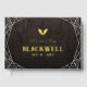 Elegantes, dunkles Halloween- oder Gothehochbuch mit einem bedrückten schwarzen Hintergrund, Spinnennetzen in den Ecken, und eine Fledermaus, deine Namen und Hochzeitstermin in Goldfolie. Goth Mr. & Mrs. Hochzeit Gästebuch in einem schwarz-goldenen Design mit weißen Spinnennetzen, Ihrem Nachnamen und dem Hochzeitstag. Schwarz-Gold Hochzeitsgast mit Spinnweben, Fledermaus und dekorativen Fonts für Ihre Halloween Hochzeit oder Hochzeit.