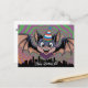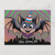 Dies ist ein von der KI generiertes Bild. Ich wollte diese Fledermaus, um einen Geburtstagshut zu tragen und eine psychedelische Skyline zu haben. Obwohl ich fragte mich, ob es aussieht, als hätte die Fledermaus keinen Körper.