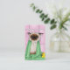 Eine siamesische Katze weicht nass aus einem Bad. Die Katze hat ein grünes Handtuch um sie herum und ihren Gummipuder in einer Kulisse aus rosa Badziegeln. Die Katze ist nicht glücklich über das Bad.