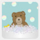 Umgeben von farbenfrohen Blasen, genießt ein Teddybär ein Bad mit seinem hellgelben gummierten Entenspielzeug im Mischmedienbild auf diesem Aufkleber. Aus meinem digital erstellten Original-Bild.