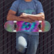 Dieses Skateboard würde cool an den Strandfronten segeln oder sich in den Skate Parks amüsieren. Sie hätten eines der radikalsten Skateboards in der Gegend.
