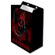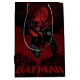 Diese mächtige Grafik illustriert Batman in einer dynamischen Action-Pose, die vor dem Hintergrund eines blutroten Mondes und einer stürmischen Gotham-Skyline sprang. Die Illustration ist in Rot- und Schwarz-Tönen durchdrungen und unterstreicht die Intensität und Gefahr des Augenblicks. Batman wird in voller Bewegung dargestellt, in Hand packend, bereit, den Gefahren entgegenzutreten, die in der Nacht lauern. Die Stadt unter ihm wird in einem detaillierten Wireframe-Stil dargestellt, was auf ihre Komplexität und die Tiefe der Geheimnisse hinweist, die sie besitzt. Regen schlägt über die Bühne und verschärft die dramatischen Spannungen und das Gefühl eines auf hohem Spiel stehenden Kampfes gegen die Kriminalität. Das Kunstwerk vermittelt Batmans unerbittlichen Antrieb und seine Rolle als dunkler Held in einer Stadt, die nie schläft, und erschließt seine Essenz als Gothams stillen Wächter und Beschützer.