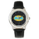 Kinder Edelstahluhr mit schwarzem Lederarmband