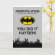 Herzlichen Glückwunsch an Ihren kleinen Superhelden zu ihrem großen Erfolg mit dieser individuell gestaltbaren Batman Gotham City Preschool Abschluss Card! Mit einem dynamischen Gotham City-Design und feinem Text ist diese Karte der perfekte Weg, um einen Absolventen der Vorschule zu feiern. Personalisieren Sie es mit Ihrer eigenen Nachricht, um es wirklich etwas Besonderes zu machen.