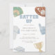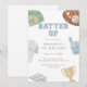 Batter up Preppy Blue Baseball Bow 4th Birthday Einladung