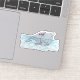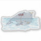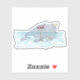 Eine skurrile Illustration eines großen Hornwal-Lebewesens mit Reißzähnen, einer Ankertätowierung auf seiner Flosse und einer Tätowierung, wie viele Schiffe er auf seinem Rücken versunken hat, mit einem Walreiter auf seinem Rücken, ist von sanften Wellen umgeben. Der Kontrast zwischen der riesigen Kreatur und dem winzigen Fahrer legt eine spielerische Erzählung nahe. Die gedämpften Farben und die einfachen Linien schaffen eine charmante und fantasievolle Szene.