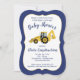 Fun Bau Backhoe Baby Dusche Einladung mit whimsical und trendige Schriftart.