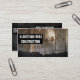 Bau-Heimwerker-Visitenkarte. Eine raue - und - Sturzkarte groß für irgendeinen Mann auf dem Arbeitsgebiet. Hölzerne Planken des Schaukastens, die jeder Heimwerker in seinem Geschäft benutzt und regelt. Zeigt auch den Reifenschritt und -metall und macht diese berufliche Geschäftskarte sehr männlich und groß für diese Arbeitskraft des blauen Kragens!