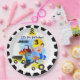 Kinder, denen Liebebaufahrzeuge und große LKWs Liebe sind, unser Bau tauscht PapierTeller des 3. Geburtstages als Zusatz zu ihrer dritten Geburtstagsfeier! Kennzeichnet einen Jungen mit einem gelben Schutzhelm und einigen Baufahrzeugen einschließlich Kipper, Planierraupen und Endenlader, Text, der ihn ist mein Geburtstag, eine Nr. 3, Baukegel, dekorativer Rand des Schwarzen und ein Bereich liest, die, Sie seinen Namen leicht addieren können, um zu personifizieren!