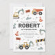 Gefahr: Bauzone! Feiern Sie den Geburtstag Ihres Bauarbeiters mit dieser Müllwagen- und Baggereinladung in gedämpften Boho-Farben. Passen Sie diese Einladung mit Ihren Veranstaltungsdetails einfach an, indem Sie auf den Button "Personalisieren" klicken.