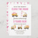 Liebe und Bauen auf die angenehmste Art und Weise mit unserer "Construction Dump Truck Heart Birthday Invitation" zusammenbringen. Diese einzigartige Einladung verbindet den rauen Charme der Baukunst mit der süßen Touch der Herzen und schafft ein einzigartiges Motto, das perfekt zum Feiern des besonderen Tages Ihres kleinen Bauers ist.