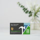 Die Karte verfügt über eine abstrakte grüne Zuhause mit weißem Fenster. Darüber befinden sich die hellen, gelähmten blauen Himmel.