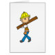 Eine Strichmännchenbauarbeitskraft in einem gelben harten Hut trägt Bauholz auf Strichmännchenbau-Thema T - Shirts, Hoodies, Tassen, Karten, Aufklebern und anderen Einzelteilen, die für jedermann perfekt sind, das Bau, für Tischler und Erbauer bearbeitet!