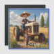Auf dieser Magnetkarte befindet sich ein fröhlicher Bauer, der seinen Traktor fährt.
