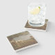 Bauer, die auf einem Feld mit Pferden und Pflug st Steinuntersetzer
