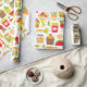 Modernes Muster mit einer Vielzahl von Obst-, Gemüse- und Blume-Elementen.  Ideal für Bauer- und Küchenprojekte.