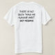 Die Front des Shirts hat ein Bild einer toten Kuh mit der Aufschrift, "bäuerisch ist noch tot". Die Rückseite des Shirts sagt, "es gibt keine solche Sache wie menschliches Fleisch. Gehen Sie vegan!"