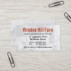 Bauern Visitenkarten. Einfache schwarze Schrift über einem hellen Hintergrundbild eines Bauerntischs. Name des Betriebs in dunkelorange-roten Buchstaben. Reverse hat ein durchsichtiges Traktorbild.