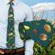 Krawatte pflanzlicher Muster. Dunkelblauer Hals mit bunten Bildern von Veggies, wie Mais auf dem Cob, Laken, Paprikaschoten, Zwiebeln, Erdbeeren, Pilzen, Kartoffeln, Squash und Knoblauch. Ideal zum Ankleiden eines Bauern, Bauernhofs, Gärtners und / oder Vegetarier.